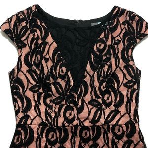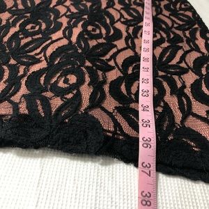 In great used condition Anthropologie black lace dress by Eva Franco In size Medium. Has a zipper on the back. See through v-neck. Fully lined. Please see all photos.
