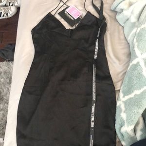 Women’s 0-2 Satin Black mini dress NEW never worn with tags on