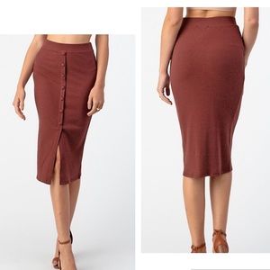 ☕️Brown Ribbed Midi Pencil Skirt 🤩