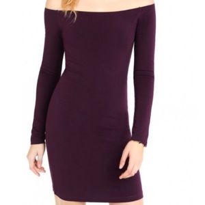 EXPRESS Off the Shoulder Long Sleeve Purple Dress