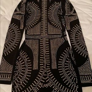 Black with rhinestones has stretch and under garments build in