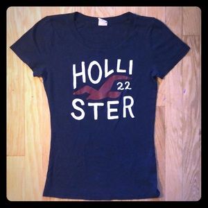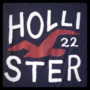 NEW condition,no signs of wear or flaws! Navy blue Hollister tee shirt with logo on front in white and burgundy. Size small.
