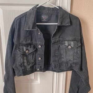 Black cropped and distressed Jean jacket. Distress shown in photos above. Never worn.