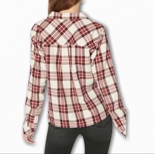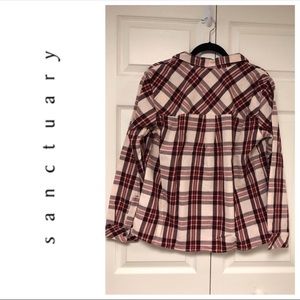 BRAND; SANCTUARY RED PINK PLAID BUTTON DOWN TOP WITH FRONT TIE