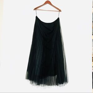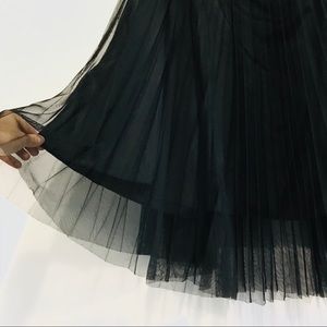 π― % polyester , black sheer skirt with zipper on the side , size 14 ( L ) . Perfect for ensemble your night look . The measurements are waist is 36β , length from waist to bottom is 39.5β