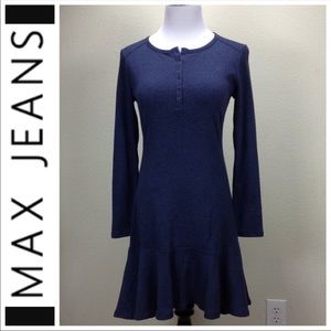 NWT Max Jeans Blue Long Sleeve Cotton Skater Dress