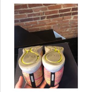 Great used condition! Honestly my favorite Running shoe for comfortable easy runs. Really good shape, probably have around 100 miles on them. No snags or flaws except the small hole in the heel which is from my brace.