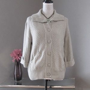 NEW Sonoma Gray Knit 3/4 Sleeve Cardigan Sweater M