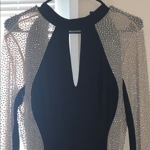 this beautiful dress has only been worn 1 time for my best friends black tie wedding. the long sleeves are perfect for chilly weather or if you’re trying to cover up tattoos. it’s form fitting and super comfortable to dance the night away in!