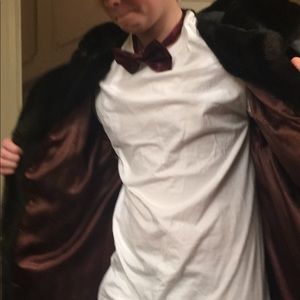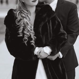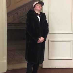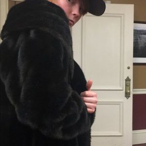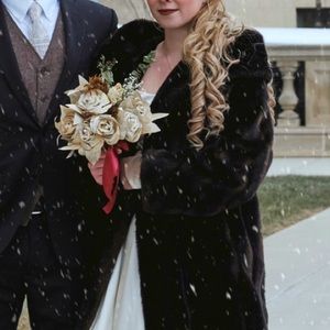 Beautiful open fur coat. Worn for my December wedding (also modeled by my little brother). I’m guessing on the size. I’m a small for reference and had plenty of room.