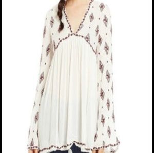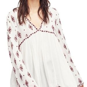 Free People Womens Diamond Embroidered Hi-Low Peasant Top