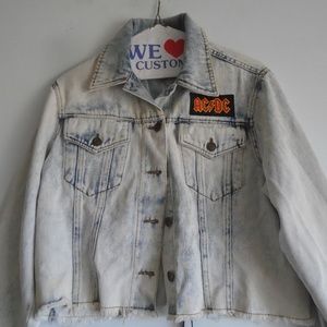 AC/DC women's acid wash jeans jacket. Button front. Laced back