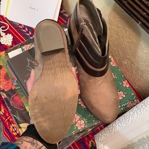 Carlos Santana booties size 7. taupe with dark brown belts around the ankle. Only worn once. Zippers intact