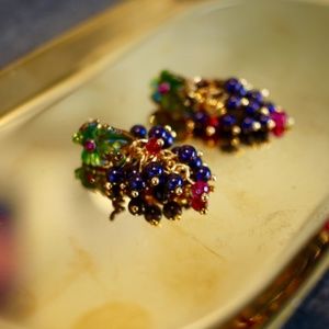 Materials: Gold plated brass (14k), stud in surgical steel, glass bead, rhinestone and hand painted enamel. Nickel free.