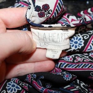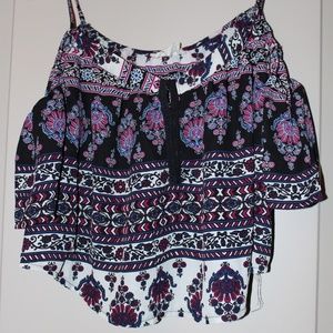 Great Condition! Super cute boho style print crop top by LA Hearts. Off-shoulder sleeve, Women’s size small. Clasp closure in the front.