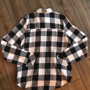 Tags: plaid; Buffalo plaid; button down; button up; blouse; shirt; top; checks; black and white; juniors; 16; size 16; XL; extra large