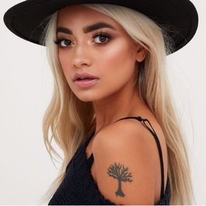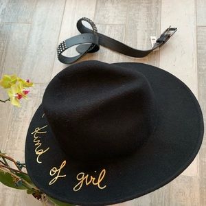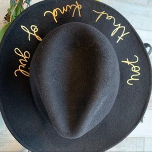 Zara Fedora 100% Wool Classy Wide firm brim Black Hat strong shape black dress Hat with yellow gold handwritten: Not that kind of girl