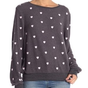 Brand new with store tag attached (not wildfox tags)!! Long sleeves. Crew-neck. Hearts are light pink in color.