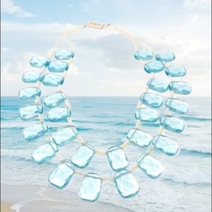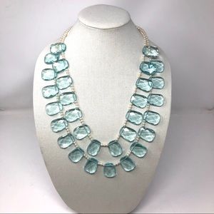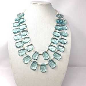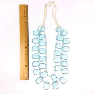Stunning statement necklace made of powder blue square faceted genuine crystals, and genuine cultured pearls securely weaved together with a matte finish sterling silver clasp.