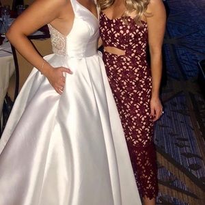 Beautiful dress worn once to a wedding. Strapless, sweetheart neckline. Burgundy / maroon color. Gorgeous lace detail. Perfect for Fall/Winter wedding, received so many compliments on this one.