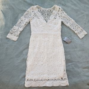 Lulu's Rainey White Lace Long Sleeve Bodycon Dress
