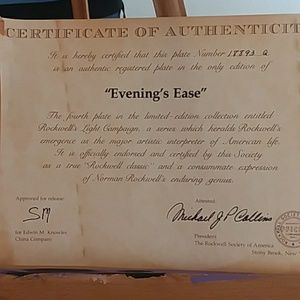 Evenings Ease. Collector plate of Norman Rockwell paintings. Still has original box from 1984