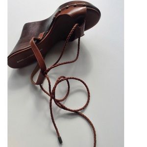 Beautiful Must Have Diane von Furstenberg Leather Wedge Sandals with wooden wedge.