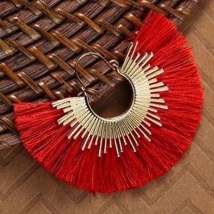 NWT Gold-tone Sunburst Red Fan Tassel Earrings
