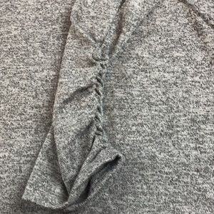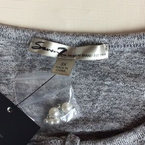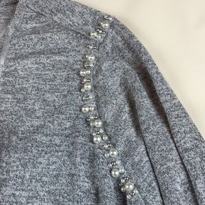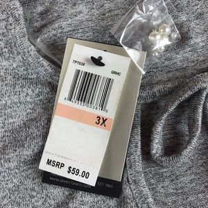 Seven7 Gray Long Sleeve Stretch Top with Ruched Sleeves, Key Hole and tie String Neck and White/Silver Pearls Size 3X