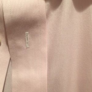 Jos A Bank pink narrow striped dress shirt. Spread collar, rounded barrel cuff. 17-36