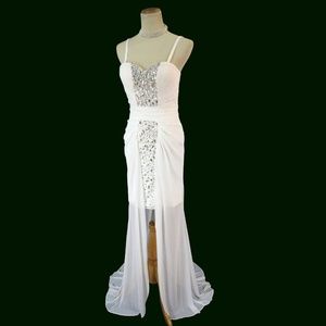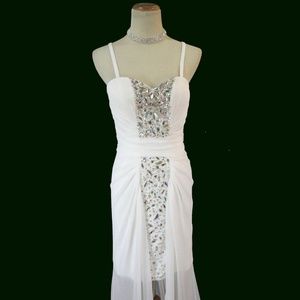 NWT TERANI White Beaded Ruched High-Low Bridal