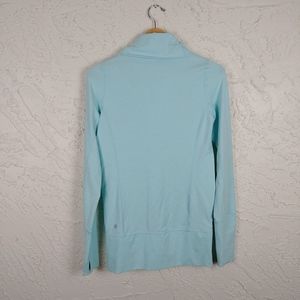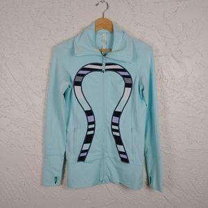 Lululemon In Stride Jacket - Heathered Aquamarine / Discover Stripe White Deep Indigo. Longer length jacket gived some bum coverage.
