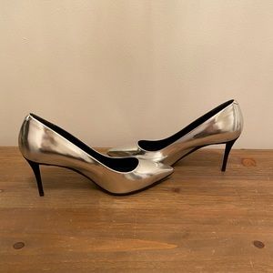 Beautiful silver mirrored leather Giuseppe Zanotti pumps in size 36. Worn one time. Indoors only. In excellent condition. Just a few scuffs. Black suede 3 inch heels 👠 Extremely Comfortable!