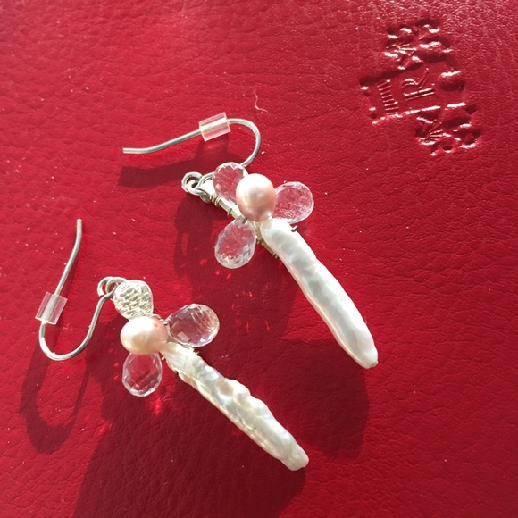 Sterling and pearl and Chrystal Earrings