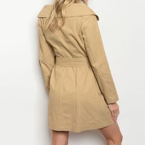Boat Neck Double Breasted Trench Coat Tan Womens