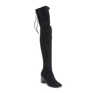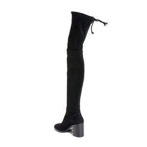 Slip on these over-the-knee boots crafted from a supple stretchy suede, they're finished with an almond toe, mid-heel and tie at the back.