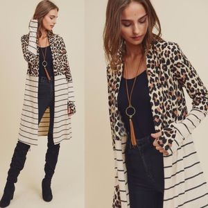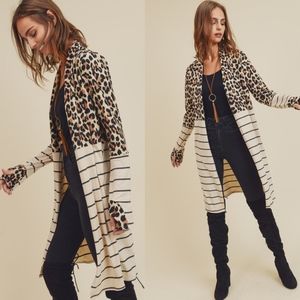 French Terry Animal Print Colorblocked Midi Cardigan with Self Jersey Stripe