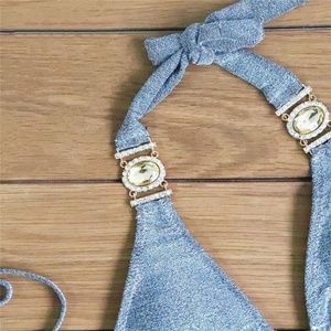 Jewelled 2 Piece Glitter Lurex Bikini Swimsuit
