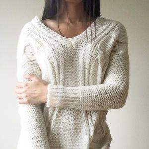 Cream colored sweater. Wear this with some leggings or dress it up with jeans and booties. Never worn.