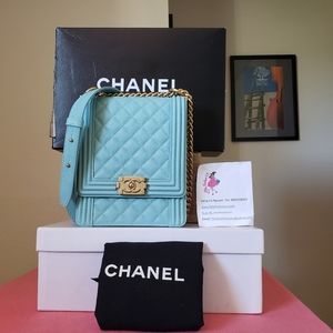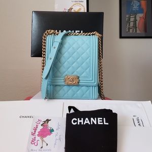 Chanel boy caviar north south blue bag