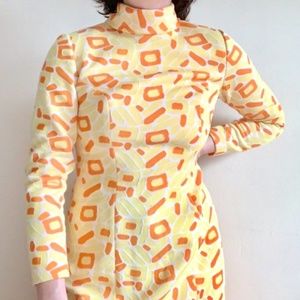 mod dress with full turtleneck and back zip. lined. no tags, possibly handmade.