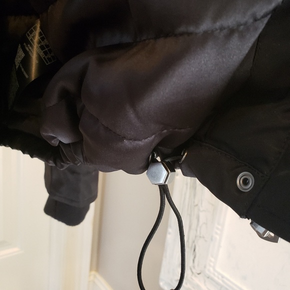 This jacket is absolutely gorgeous!!! It is a size small, but it is oversized for layering, so it will fit in medium as well. It is fully lined. It has elastic cording adjusters on the bottom of both sides, so you can make it fit tighter around the bottom. It has an inside pocket as well.This is the ultimate snow bunny jacket! Please see photos for description and details. Please ask if you have any additional questions. I do not trade. Thank you.