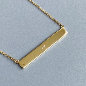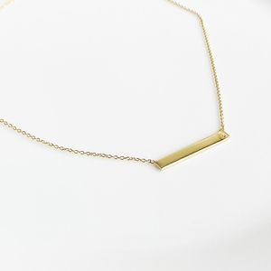 - 14K yellow gold plated pave diamond bar pendant necklace