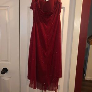 Absolutely stunning red halter style dress. Dress is fully lined and includes padding in bust. It has the most gorgeous sparkle to it!!Perfect for upcoming holidays!