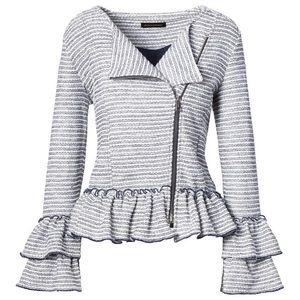 Banana Republic Ruffle Peplum & Sleeve Boucle Tweed Moto Jacket
