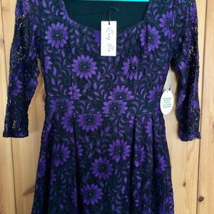 Purple and black lace dress, NWT, UK 10 US 6. 3/4 length sleeves.