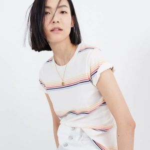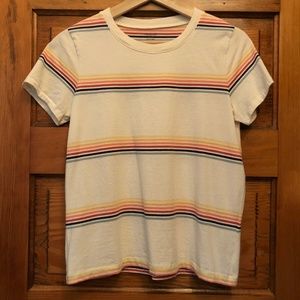 modeled after a cool shrunken vintage tee, this striped cotton crewneck is slim, classic and perfectly priced. one to stock up on/wear every single day.
