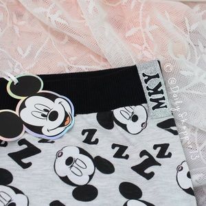 These are brand new with tags MKY Mickey Mouse "ZZZ" PJ legging style pants. Light-gray background with a sleeping Mickey + "Z" pattern. Features a black waist band, black bow, 3 glitter buttons, and sparkly hem tag. Disney x Primark exclusive.