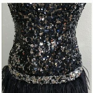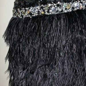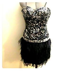 Never worn still has tags on it black and white prom dress beautiful Classy has silver sequences black feathers cocktail Style dress you will love where they'll make you feel so beautiful and look beautiful