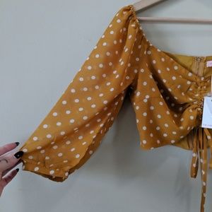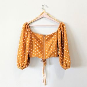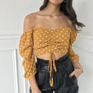 RE:NAMED Mustard Dot Off The Shoulder Crop Top Size Medium